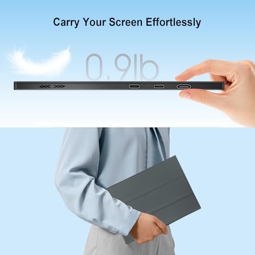 ?Slim & Portable Design?Ultra-thin, lightweight, and travel-ready, this portable monitor slips easily into your bag. The included PU smart cover protects against scratches and doubles as an adjustable stand for landscape or portrait viewing.