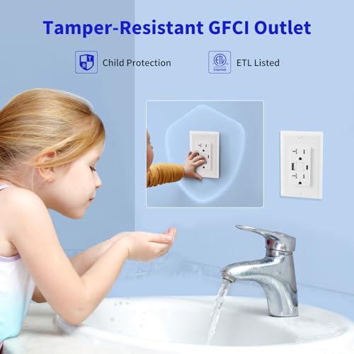 20 Amp Self-Test GFCI Outlet Combination with USB Type A and Type-C, Tamper Resistant Thinner Duplex Outlet, in-Wall, USB Charger for Smartphones, Tablets and Smart Home Appliance, White