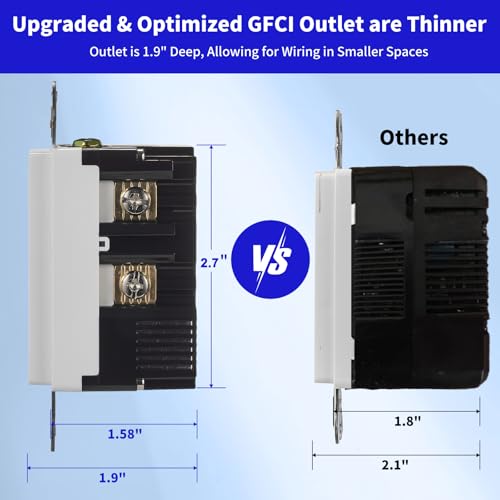 ?Safe and Reliable?The GFCI receptacle automatically performs a self-test every 5 seconds, and when a ground fault occurs in the circuit, the circuit can be quickly disconnected to protect people from electric shock.