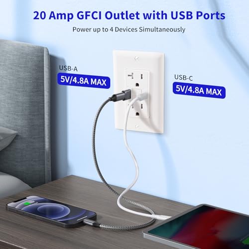 ?With USB Type A&C?The tamper-resistant 20 Amp GFCI power outlet with built-in USB type A&C port and 4.8A charging power gives you a quick and convenient charging port for your home.