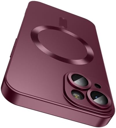 • Magnetic for iPhone 15 Case [Compatible with MagSafe][Built-in Camera Lens Protector] Slim Soft Silicone Bumper Shockproof Metallic Shine Phone Case (Burgundy)