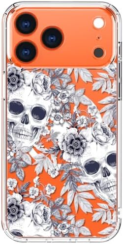 • bicol for iPhone 17 Pro Max Case with Screen Protector – Wireless Charging Compatible, Enhanced Camera Protection – Clear Phone Cover with Trendy Floral Design for Women – Elegant Skulls