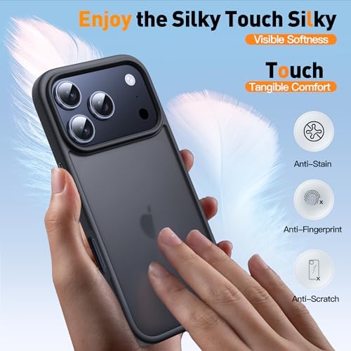[Refined Grip, Translucent Elegance] This iPhone 17 Pro Max matte case made with eco-friendly materials, its feather-light texture provides a silky yet secure grip, without the stickiness or lint of silicone or glossy cases. A nano-oleophobic coating repels smudges, fingerprints, and scratches, while the semi-clear design reveals your phone’s beauty with lasting elegance and a touch of mystery