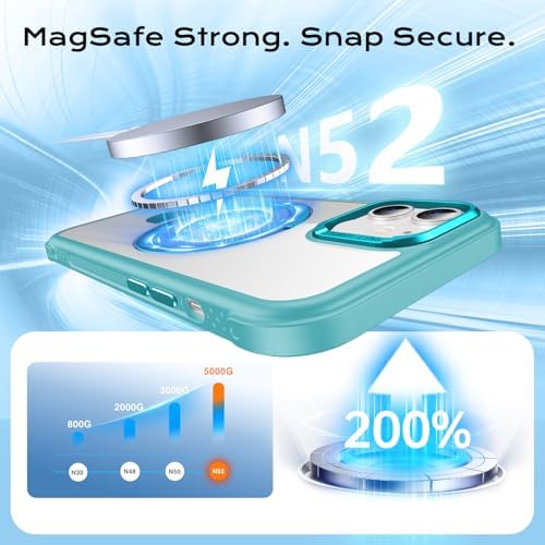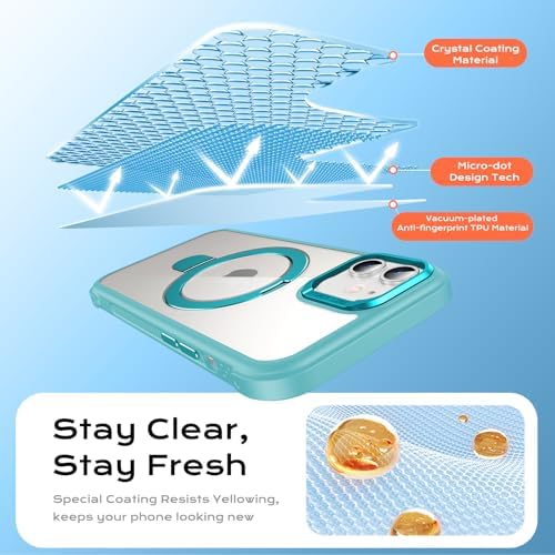 Anqrp O-Ring Magnetic KickStand Clear Case for iPhone 12/12 Pro, Compatible with Mag-Safe, Military-Grade Reinforced 4-Corners Anti-Yellowing Transparent Phone Case Cover for iPhone 12/12 Pro, Teal