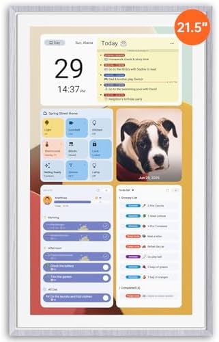 Smart Photo Frame & Live Screensaver — The 21.5″ HD touchscreen eCalendar displays memories from Google Photos and more, seamlessly, no subscription required. Personalize with videos, schedules, clocks, or a mix. Auto Brightness adapts, Sleep Mode saves energy. Climate Pledge Friendly. Beautiful faux wood frame for wall or desktop use.