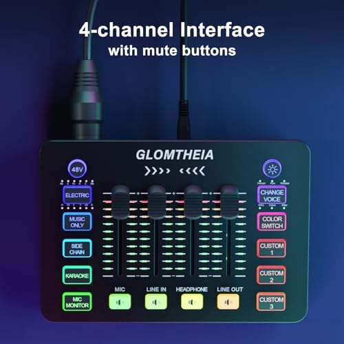 Audio Mixer Sound Board Equalizer for Gaming Podcast Streaming Karaoke, 4 Channel Soundboard for PC PS4 PS5 with XLR Condenser/Dynamic Microphone Interface, Voice Changer