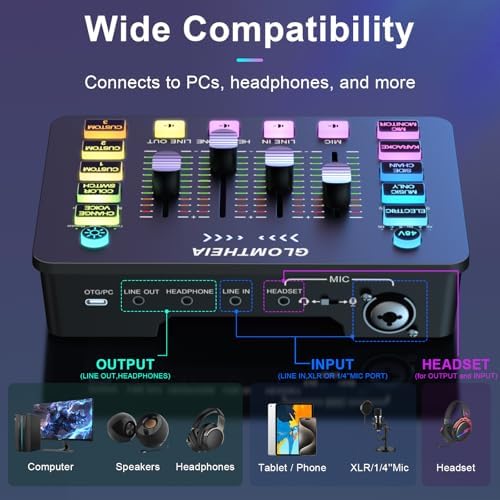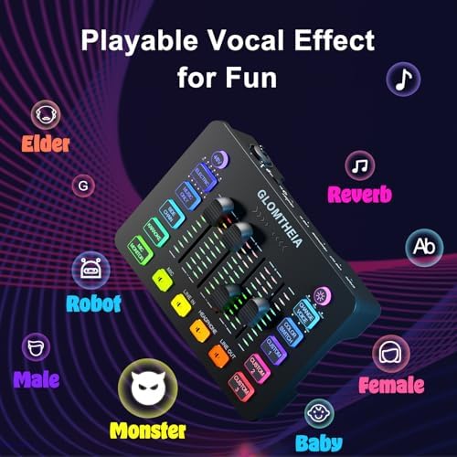 Experience unmatched audio excellence with the Dynamic Studio Mixer, the ultimate tool for gamers, podcasters, and professional musicians. Equipped with advanced 48V phantom power, this mixer ensures that every recording is of broadcast quality, capturing every nuance with precision. The versatile XLR and USB connectivity options make it easy to integrate with a wide range of audio equipment. Whether you’re connecting a vintage microphone or the latest digital device, setup is seamless and efficient. Customize your setup with our dynamic RGB lighting, offering 8 different colors to match your mood and enhance your live streaming environment. The intuitive control panel allows you to adjust settings effortlessly, ensuring that your performance is both visually and audibly captivating. Take full control of your sound with individual channel controls for MICROPHONE, LINE IN, HEADPHONE, and LINE OUT. Smooth volume sliders provide precise adjustments, making it ideal for live performances and studio recordings. The built-in sound effects, including compression, reverb, and noise reduction, offer professional-grade audio manipulation, while six voice-changing modes and 12 auto-tune options let you create unique soundscapes for any project. Designed for ease of use, the Dynamic Studio Mixer supports plug-and-play functionality with both Mac OS and Windows systems, eliminating the need for additional drivers or complex setups. Its robust, portable design makes it perfect for home studios and live performances alike, ensuring reliable performance wherever your music takes you. Invest in the Dynamic Studio Mixer today and elevate your audio production to professional levels. With its comprehensive features and user-friendly design, this mixer is more than just equipment—it’s the heart of your audio setup, ready to bring your creative vision to life.