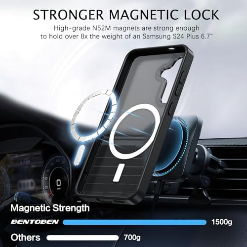BENTOBEN Magnetic for Samsung Galaxy S24 Plus Case [Compatible with Magsafe] Translucent Matte Slim Thin Shockproof Anti-Yellow Women Men Protective Phone Cases Cover for Samsung S24 Plus 6.7″, Black
