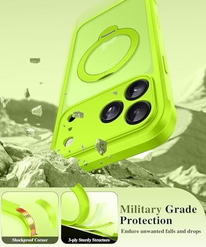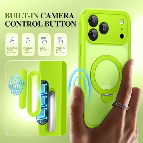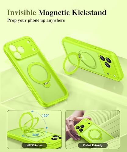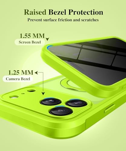 BERFY for iPhone 17 Pro Max Case, Compatible with MagSafe, Built in Privacy Screen Protector and 360 Spin Magnetic Stand,Anti-Spy Full Body Shockproof Matte Phone Case for 17 Pro Max 6.9″,Bright Green