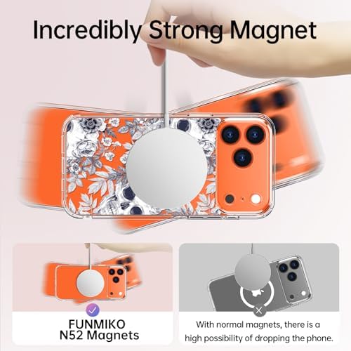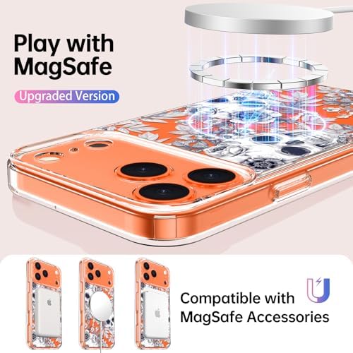 bicol for iPhone 17 Pro Max Case with Screen Protector – Wireless Charging Compatible, Enhanced Camera Protection – Clear Phone Cover with Trendy Floral Design for Women – Elegant Skulls