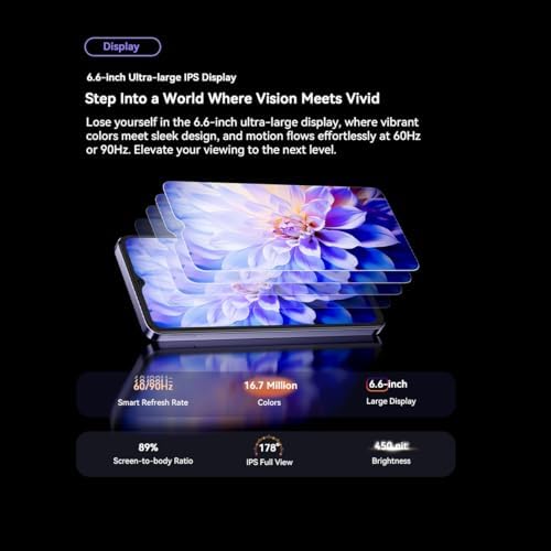 ??6.56-inch HD+ Bigger Screen?Blackview Wave 8 Crystal-Clear Views on a Larger Screen:Experience captivating visuals on the expansive 6.56-inch waterdrop display that elevates your viewing experience. With an impressive 89% screen-to-body ratio, WAVE 8’s HD+ IPS display offers you more screen real estate, making everything from streaming videos to browsing feel more immersive. The 450 nits brightness ensures clarity even under bright light, bringing your content to life with vibrant colors and sharp details. Dive into a world where every image feels more real and every moment is more engaging.
