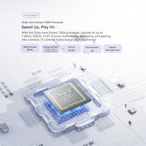 Product Description OS: Android 14Battery: 5000mAh large battery, 10W charging,Processor: T606 OCTA CORE 1.6GHz 12nm; 2x Cortex A75 1.6GHz + 6x Cortex A55 1.6GHz; Mali-G57 MC2 ARMMemory: 4GB + up to 8GB extended RAM + 256GB ROM, up to 2TB TF card, compatible with SIM + Nano SIM or Nano
