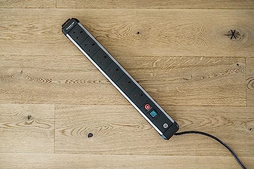 Brennenstuhl Premium-Alu-Line 6-Way Extension Lead (Power Strip with Safety Fuse Button, 3m Cable, Made in Germany) Black/Silver