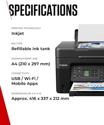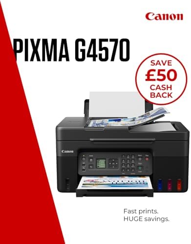 From the manufacturer CANON PRINTER: High-quality & stylish document & photo printer – perfect prints with economical high yield tanksREFILLABLE TANK PRINTER: Print 6,000 black ink pages (7,600 in Economy) & 7,700 colour ink pages (8,100 in Economy) – enjoy huge savings over the lifetime of our colour printers for