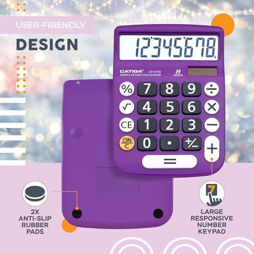 CATIGA Desktop Calculator 8 Digit with Solar Power and LCD Display, Big Buttons, for Home, Office, School, Class and Business, 4 Function Small Basic Calculators for Desk, CD-8185