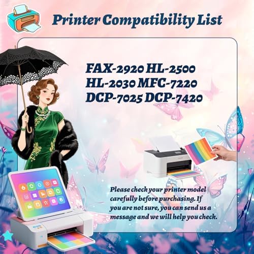 Wide compatibility, compatible for Brother FAX-2920 HL-2500 HL-2030 MFC-7220 DCP-7025 DCP-7420 printers. Please check your printer model carefully before purchasing.