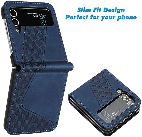 Compatible With Samsung Galaxy Z Flip 3 Case, Wallet Case Samsung Galaxy Z Flip 3, PU Leather with Hard PC Shell Shockproof Flip Cover Bookstyle Phone Cases Cover for Samsung Z Flip 3 (Blue)