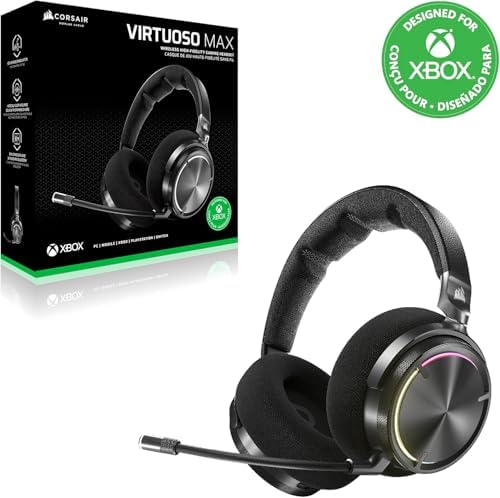 Corsair VIRTUOSO MAX WIRELESS Officially Licensed Xbox Series XS Gaming Headset – Dolby Atmos, Active Noise Cancelling, 2.4GHz Wireless & Bluetooth, Game/Chat Audio Controls, PC – Carbon