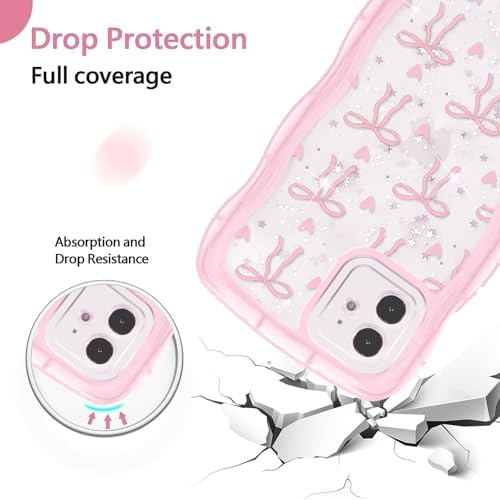 Compatibility?This cute and creative bow clear glitter stars wave frame phone cover is suitable for iPhone 12 mini 5.4 inch.Please confirm your phone model before purchasing.Compatible with wireless charging