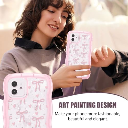 Cute Bow Glitter Phone Case for iPhone 12 mini 5.4″,Kawaii Ribbons Bling Wave Cases Girly Heart Sparkling Wavy Cover for Women Girls,Clear Soft Shockproof Protection for iPhone 12 mini,Pink