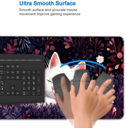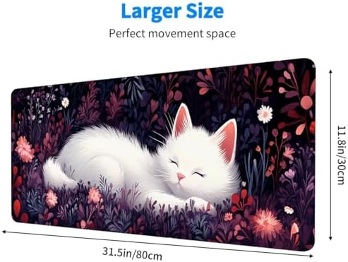 Professional Cute White Cat Gaming Mouse Pad: 31.5″x11.8″x0.12″ (800mmx300mm), 3mm Thickness This premium gaming mouse pad offers an enhanced gaming experience for all serious gamers. Its generous size accommodates your mouse, gaming keyboard, and other desk essentials while keeping your desk protected.