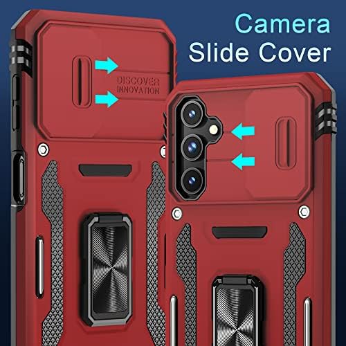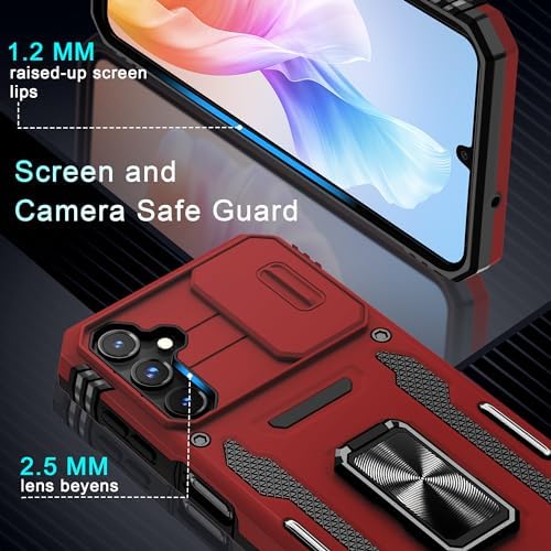 DEERLAMN Case for Samsung Galaxy A25 5G with Slide Camera Cover+Screen Protector (1 Pack),Rotated Ring Kickstand Military Grade Shockproof Protective Cover-Red