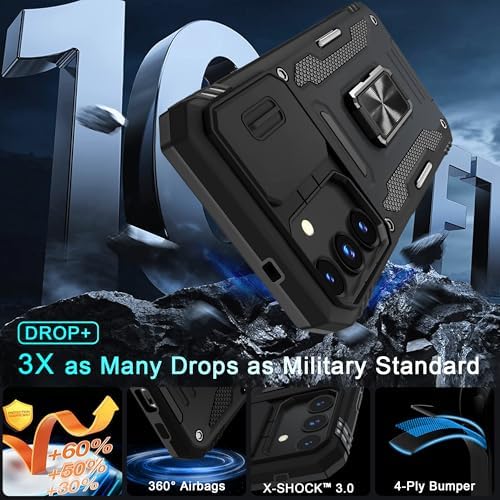 DEERLAMN Case for Samsung Galaxy S25 6.2-Inch with Slide Camera Cover+Screen Protector, Rotated Ring Kickstand Military Grade Protection Shockproof Protective Phone Case-Black