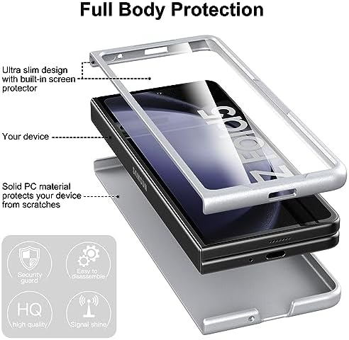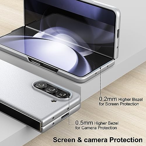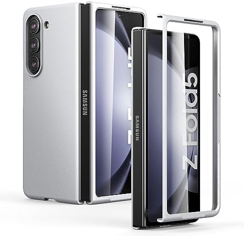 Eastcoo Slim Fit Galaxy Z Fold 5 Case, [Built-in Clear Hard Front Screen Film+Hard PC Back] [Frosted Feel] Non-slip Lightweight Full-Body Protective Case Cover for Samsung Galaxy Z Fold5, Silver