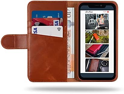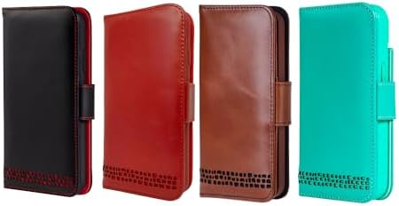 Ed Hicks Brown Leather Case for iPhone 16 Plus — Genuine Leather Wallet Flip Case — RFID Blocking Card Holder Slots— Kickstand— Biodegradable Shockproof Phone Holder— Brown with Unique Vintage Patina