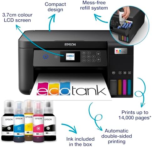 KEEP ON SAVING – This economical printer saves you up to 95% on printing costs* and comes with an extra black ink bottle for up to 3 years’ worth of ink included in the box*. One set of ink bottles delivers up to 14,000 pages in black and 5,200 in colour*.