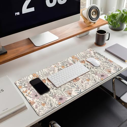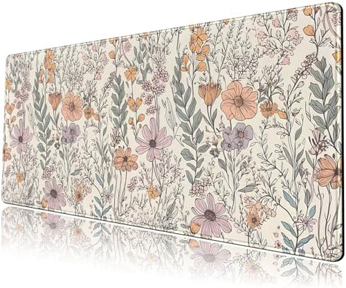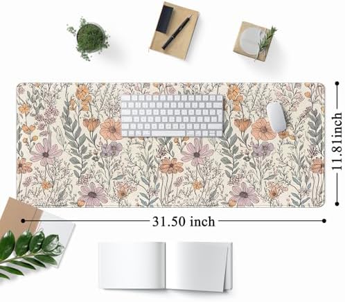 Floral Desk Mat Cute Wildflowers Large Mouse Pad Extended Plant Gaming Mousepad XL Keyboard Mouse Mat Nature Botanical Aesthetic Desk Pad 31.5″x11.8″ for Work Office Decor Gifts