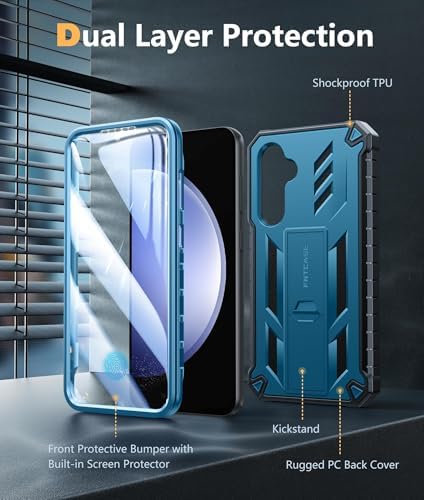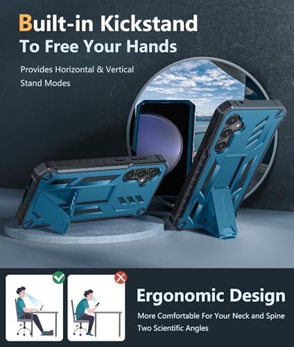 FNTCASE for Samsung Galaxy S23-FE Case: Military Grade Protective Hard Phone Case with Kickstand | Screen Protector | Shockproof TPU Full Protection Drop Proof Phone Cover for Galaxy S23 FE 5G Blue