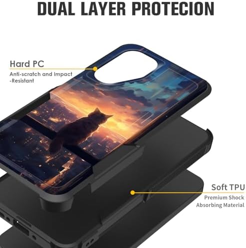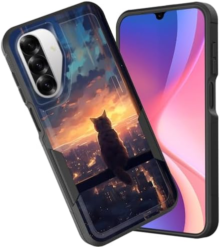for Galaxy A17 5G Case,Dual Layer Heavy Duty Hybrid Shockproof Hard PC Soft Silicone TPU Bumper Protective Cover Case for Samsung Galaxy A17 5G 6.7 inch 2025,Cat Sitting on Window