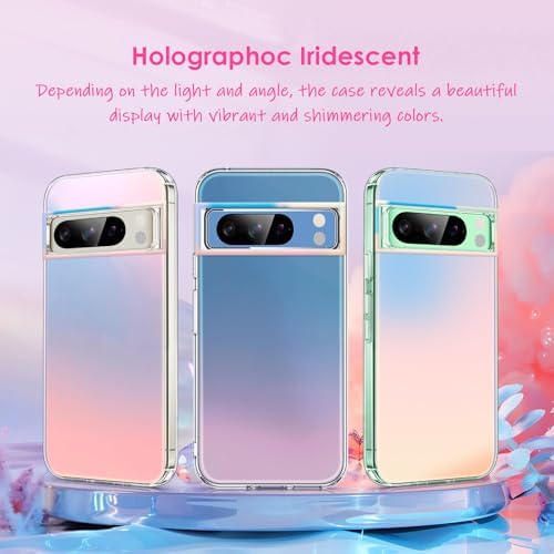 for Google Pixel 8 Pro Case Holographic Iridescent Unique and Aesthetic Shockproof Phone Case for Girls and Women Translucent Iridescent Bumper Protective Cases Pixel 8 Pro Cover