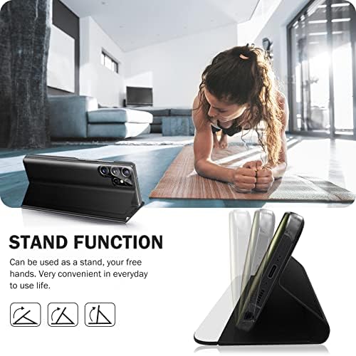 for Samsung Galaxy S23 Ultra 5G Case View Clear Smart Window Leather for Samsung S23 Ultra Case Luxury Flip Slim Mirror Hard PC Kickstand Shockproof Galaxy S23 Ultra Cover Protective (Black)