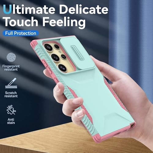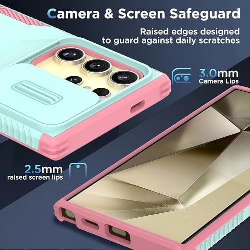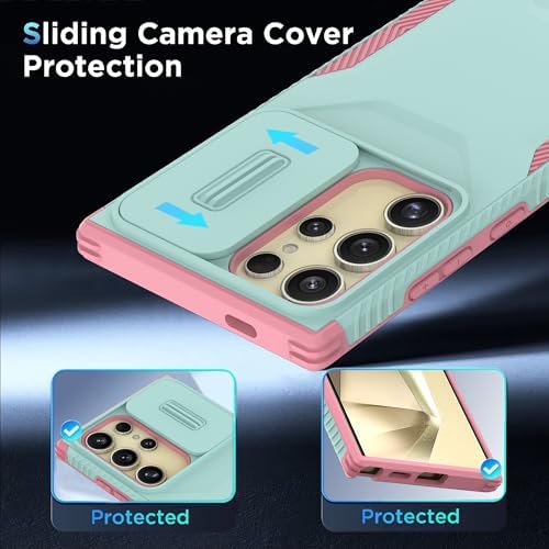 for Samsung Galaxy S24 Ultra Case, with 1 HD Screen Protector & Slide Camera Cover [Military-Grade] Phone Case Heavy Duty Rugged Shockproof Protective Cover for Galaxy S24 Ultra(Cyan/Pink)
