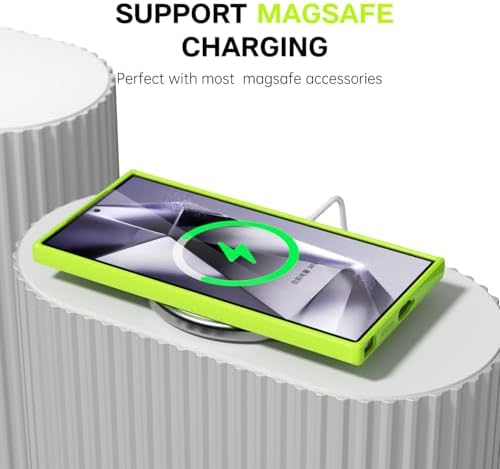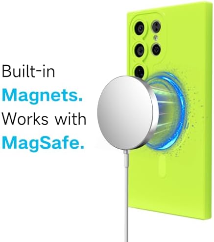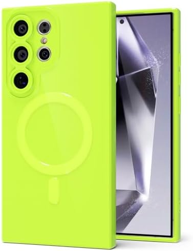 for Samsung Galaxy S24 Ultra Phone Case Silicone Magnetic, Compatible with Magsafe Case Cute for Women, Girly Bright Color Glossy Jelly Thin Slim Hard Mag Safe Rubber & Camera Cover, Neon Green Lime