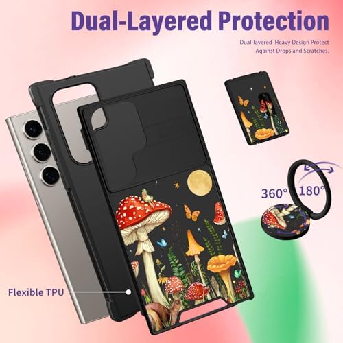 for Samsung Galaxy S25 Ultra Case – Women Girls Cute Phone Cover Pretty Aesthetic Girly Mushroom Unique Design with Camera Cover and Ring Stand Funda for Samsung S25 Ultra Case