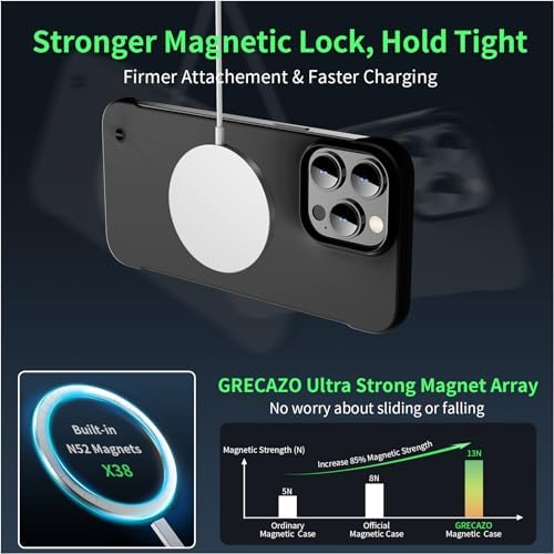 [Compatible with All MagSafe Accessories] This slim iPhone 15 Pro magsafe case is built with a 26 piece wide body N52 magnet that supports all MagSafe accessories, and delivers automatic adsorption and seamless alignment for the fastest and stable possible charge, up to watts to the iPhone 15 Pro.