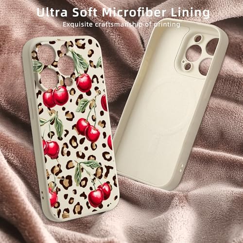 Idocolors Case for iPhone 16 Pro Max 6.9″, Cherry Leopard Print Phone Case, Compatible with MagSafe, Silky-Soft Touch Liquid Silicone Phone Cover with Camera Lens Full Protection