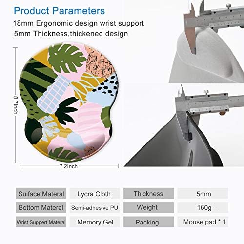 ITNRSIIET Mouse Pad, Ergonomic Mouse Pad with Gel Wrist Rest Support, Floral Mousepad with Lycra Cloth, Non-Slip PU Base for Gaming Computer, Laptop, Home, Office & Travel, Abstract Leaves