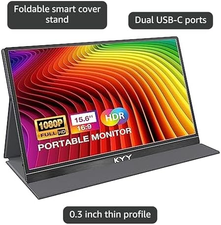 KYY Portable Monitor 15.6” FHD 1080P USB C HDMI Gaming Monitor Ultra-Slim IPS Display w/Smart Cover & Speakers, Plug&Play, External Monitor for Laptop PC Phone Mac Xbox PS4