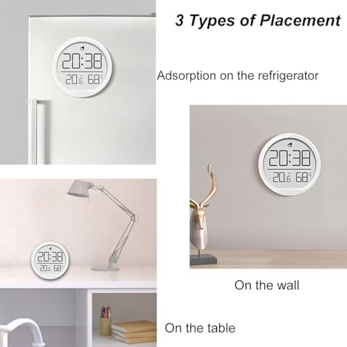 ??3 Types of Placement? The electronic alarm clock has 3 ways to place, hidden magnet on the back, hanging hole and storable stand. You can place it on the table, hang it on the wall or attach it to the refrigerator. You can choose a suitable and convenient placement according to your preference.