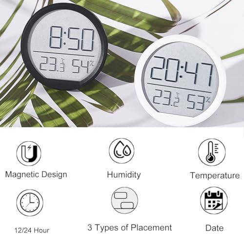 Lancoon LCD Digital Alarm Clock with Temperature & Humidity Small Magnetic Design Desktop Hanging 3 Types of Placement 12/24 Hour Calendar for Home Kitchen Office Students