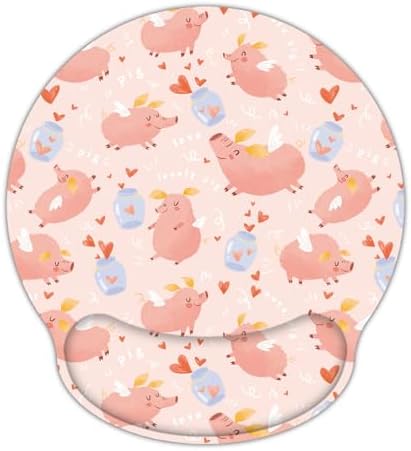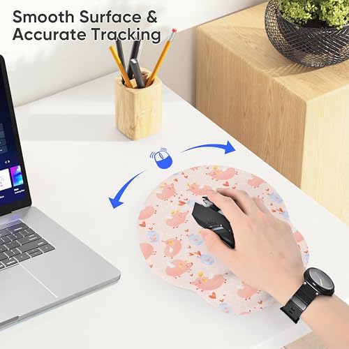 Laptop Computer Gaming Mouse Pad with Wrist Rest Support,Ergonomic Memory Foam Mouse Mat,Non-Slip Rubber Base Office Work Desk Pad,Comfortable & Pain Relief (Pink Pig)