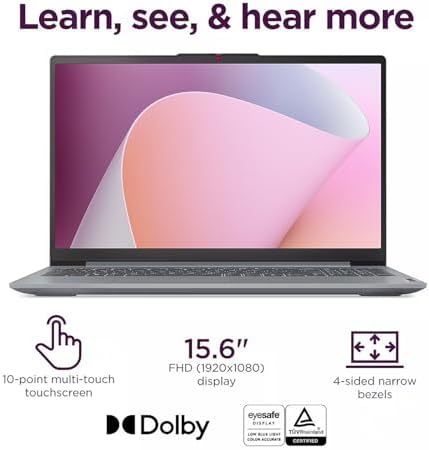 15.6″ Full HD Display: The IdeaPad Slim 3 boasts an 88% screen-to-body ratio for a floating, edge-to-edge visual experience. TÜV Low Blue Light certification reduces eye strain, making it perfect for long work or study sessions.