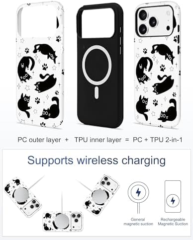 Compatible Model: This magnetic black cat phone case is compatible with iPhone 17 Pro 6.3 inches ONLY. Please check the phone model size before purchasing.