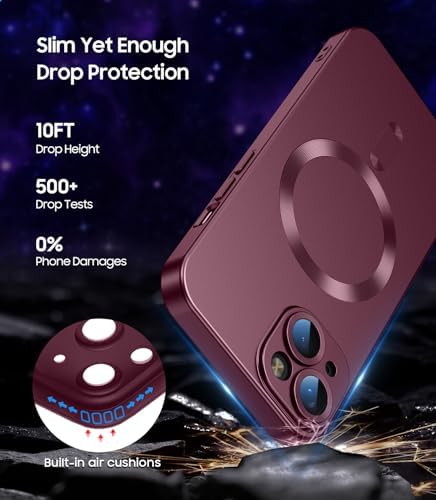 Magnetic for iPhone 15 Case [Compatible with MagSafe][Built-in Camera Lens Protector] Slim Soft Silicone Bumper Shockproof Metallic Shine Phone Case (Burgundy)