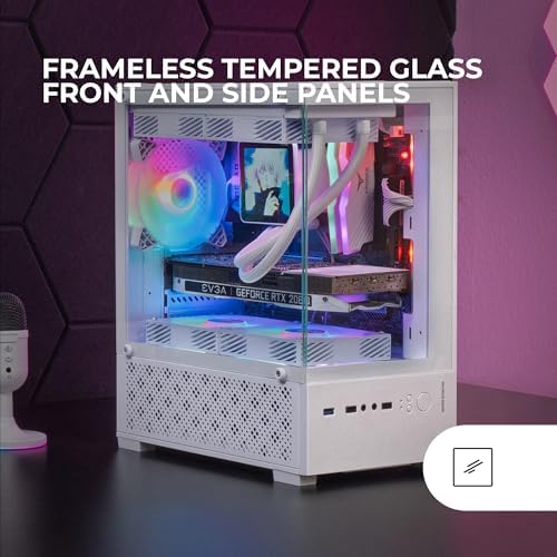 From the manufacturer Frameless Panoramic Design The continuous tempered glass front and side panels give the MC-SE2W a clean, modern, and professional look. Showcase all your components like never before, with an unobstructed view that’s perfect for RGB lighting setups and custom builds designed to stand out. Compact and Versatile