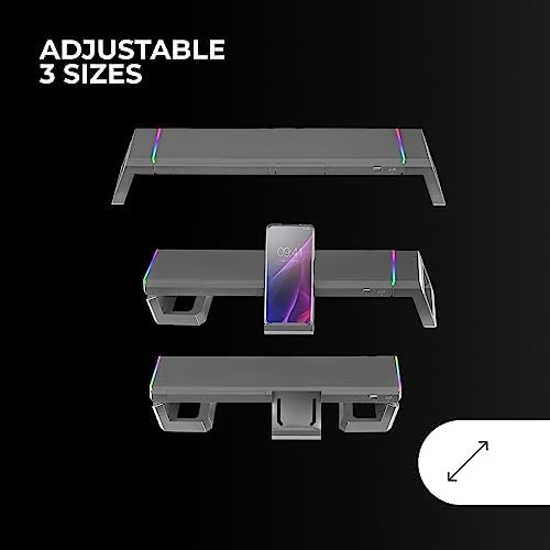 Mars Gaming MGS-ONE Black, Chroma RGB Monitor Stand, Adjustable Size, Smartphone and Tablet Stand, Front USB 2.0